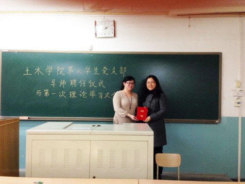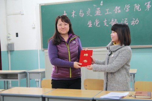 图5 第六学生党支部为张蕊老师发聘书