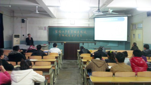 第四学生党支部理论学习导师周春和第七学生党支部理论学习导师赵海云以 “论群众路线”为主题,为学生党员系统解读党的群众路线。他们要求学生党员,必须做到:从同学中来,到同学中去;一切从同学出发,一切依靠同学。学生党员在日常学习中要严于律己,慎言慎行,看到周围同学的违规违纪现象要及时给予制止。