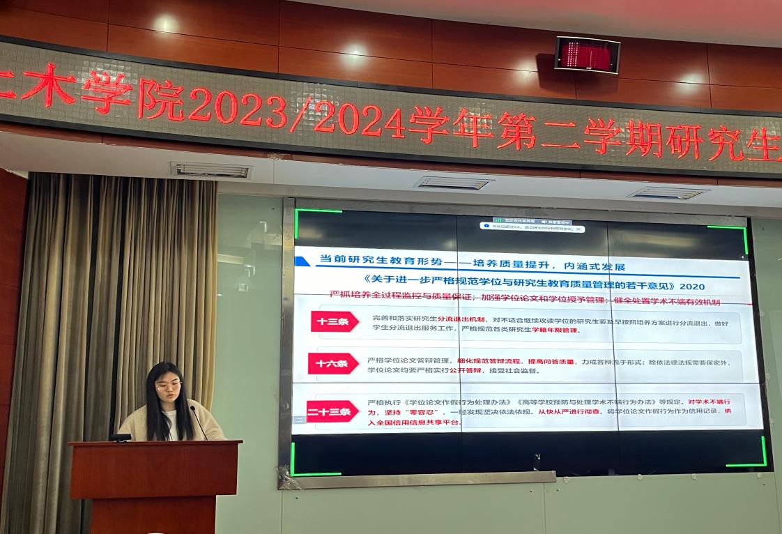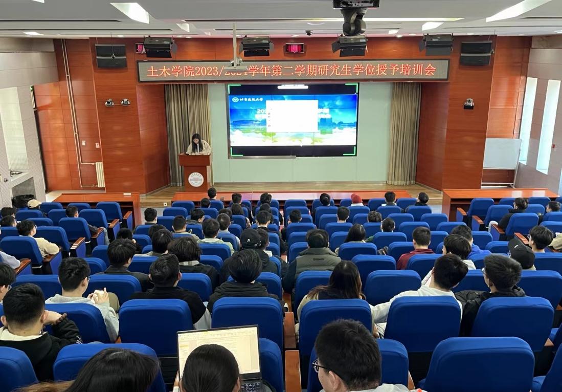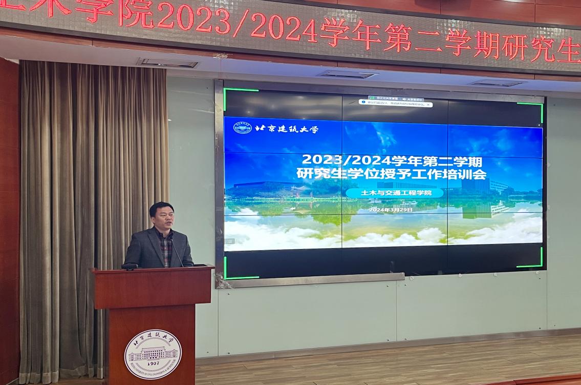 3月29日上午,土木学院2023/2024学年第二学期研究生学位授予工作培训会在大兴校区学E报告厅及线上腾讯会议同步召开,土木学院副院长李之红、科研办公室主任袁艺,以及200余名本届硕士及博士毕业生参会。会议由袁艺主持。