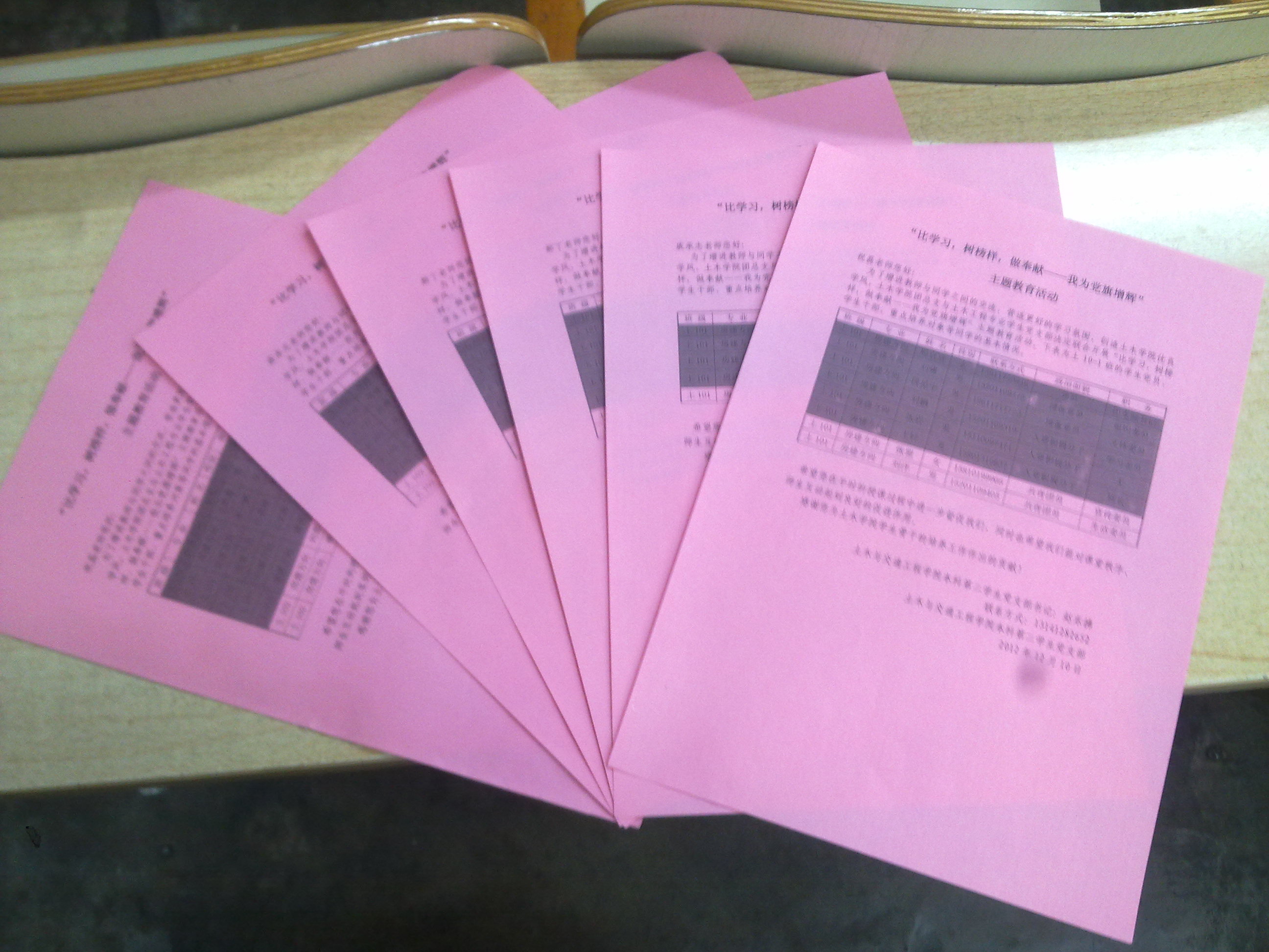 党的十八大报告中明确提出:“健全党员立足岗位创先争优长效机制,推动广大党员发挥先锋模范作用”,根据十八大精神,按照学院学习贯彻十八大精神工作部署和安排,结合土木学院学生党支部特色“小粉纸”行动,在学习贯彻十八大精神期间,为进一步增强学生党员在日常学习、生活中的模范带头作用,增进教师与同学之间的交流,营造更好的学习氛围,创造优良学风,将十八大精神切实落实到学生日常学习和生活中,土木学院学生党支部开展了“明确责任、争做表率”深化“小粉纸”行动。
