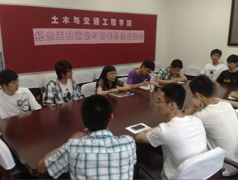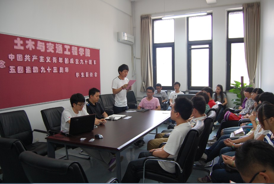 在“五四”爱国运动九十三周年及中国共产主义青年团成立90周年到来之际,5月4日下午,土木学院召开了纪念五四运动九十三周年学生座谈会,党总支副书记朱静、团总支书记王秉楠、学院的团总支委员、研究生会、学生会成员及部分学生代表参加了此次座谈会。党总支副书记朱静、团总支书记王秉楠分别主持校本部和大兴校区学生座谈会。