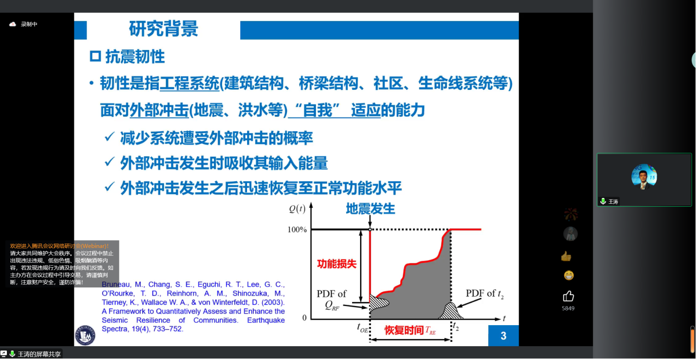 王涛研究员做了主题为《城市医疗系统抗震韧性评价方法初探》的报告,提出了用于医疗系统抗震韧性评价的量化分析框架,基于状态树方法对急诊医疗系统抗震韧性进行了量化分析,建立了城市工程系统抗震韧性评价Benchmark模型,考虑震后基础设施损伤进行了震后医疗服务可达性分析。