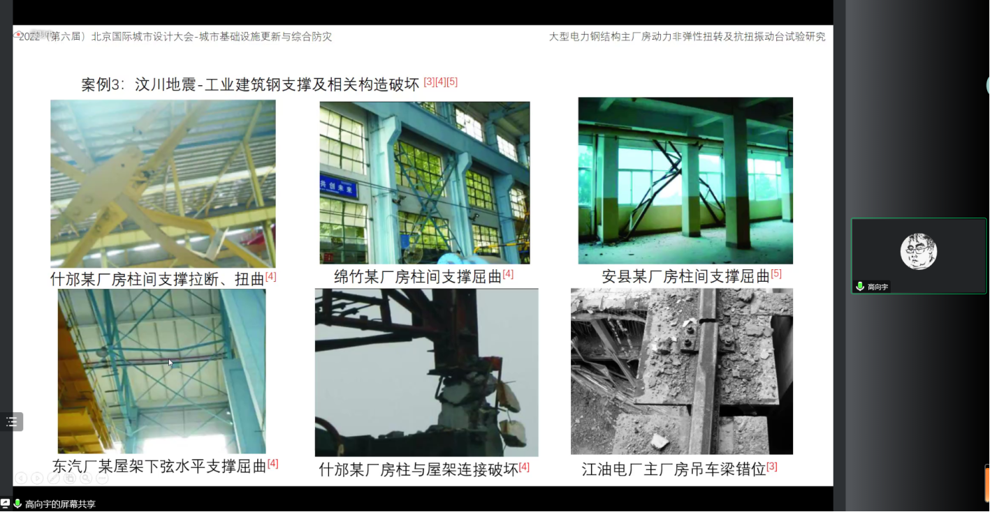 高向宇教授做《大型电力钢结构主厂房动力非弹性扭转及抗扭振动台试验研究》专题报告,通过F-BRC和F-BRB钢框排架结构体系的振动台试验和有限元分析,研究了两种不同结构的抗震性能,建议在高烈度区使用F-BRB消能减震结构体系。