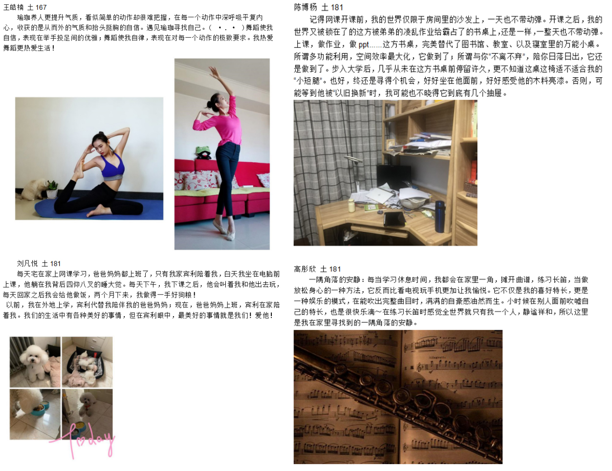 最令人享受的时光莫过于在自己钟爱的一个角落感受独处的宁静,或许是落地窗旁堆放着书本的书桌,是一盏茶茗一部电影,是上课时围在脚边蹦蹦跳跳的小狗……同学们分享自己最偏爱的那一角,更是一种钟爱的生活方式,每一天便从这细小的点滴时光中,收获了满满的幸福。