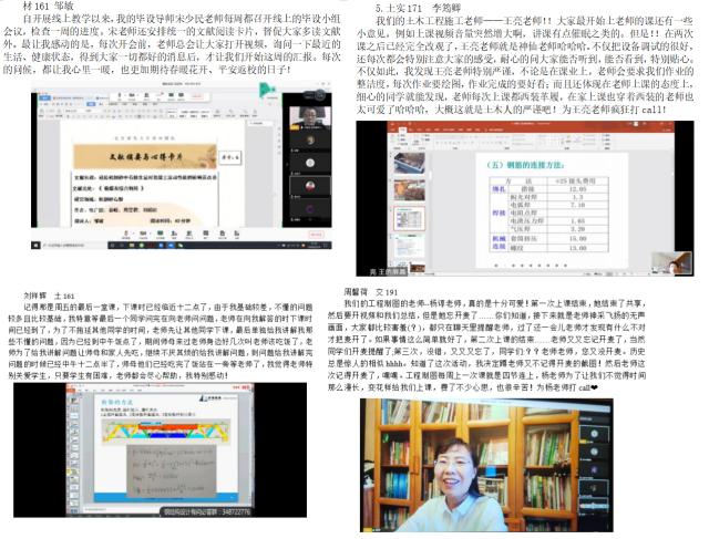 开学至今,学校通过线上课程形式实现“停课不停学”,虽然无法面对面交流,师生仍配合默契,课堂氛围融洽。老师们辛勤备课,兢兢业业地进行教学,维持教学秩序,完成线上答疑等,同学们积极互动,认真完成作业。展示了疫情期间线上教学中老师和同学的良好互动。