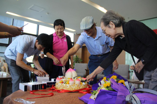 随后,退休党支部书记周坚老师诚邀全体与会老师,向傅裕寿、周文芳、张玉祥等3人祝贺八十岁生日。