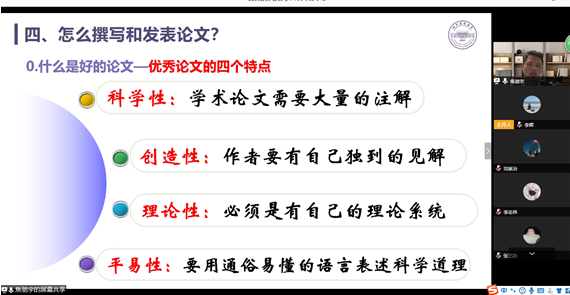 本次讲座从研究生论文写作实际需求出发,让同学们全方位地了解了科技论文的撰写要点,提升了大家在科技论文方面的写作素养,为之后开展学术科研活动打下了扎实的基础。