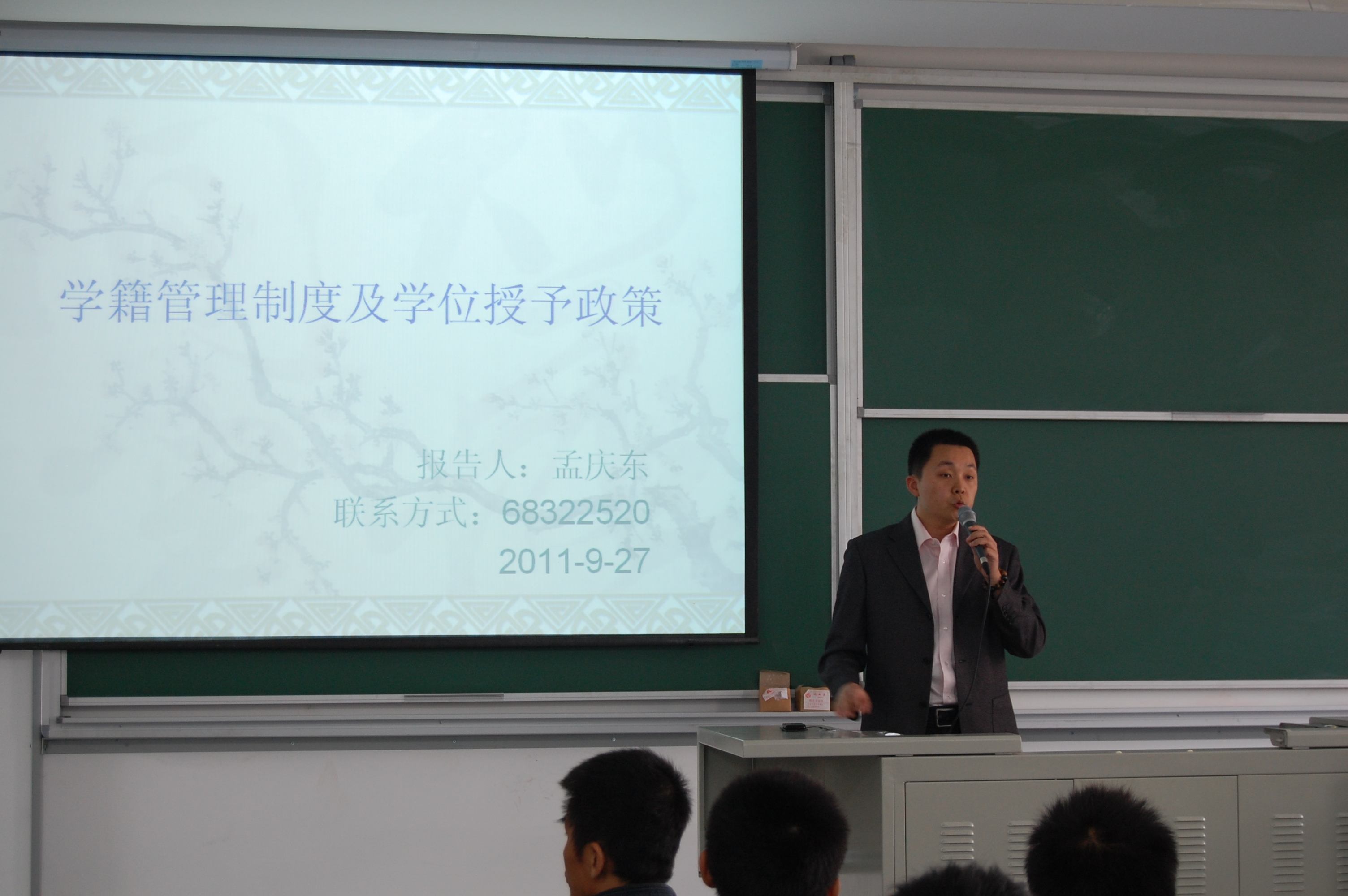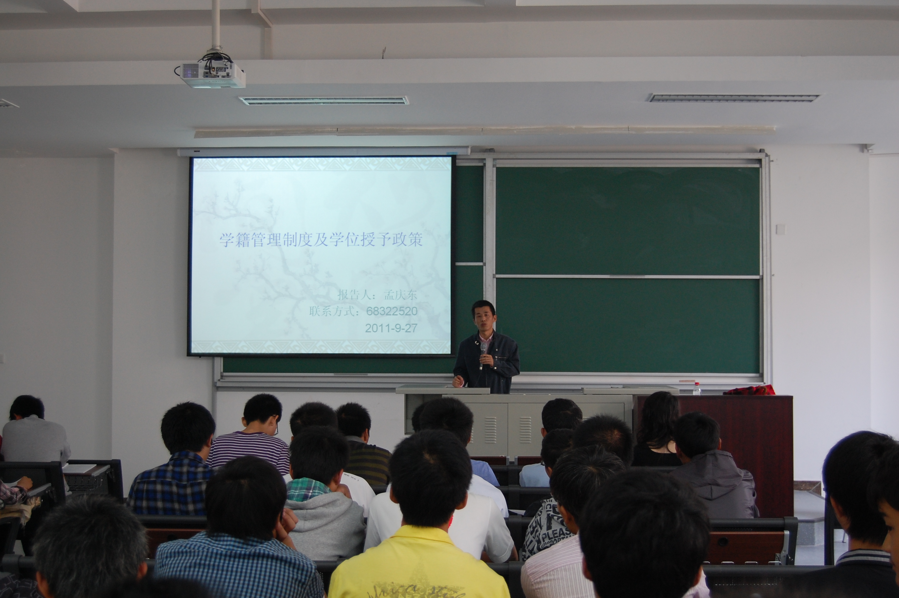 ,金年会官网举办了2011级新生入学教育—学籍管理制度专题讲座。金年会官网副院长龙佩恒,团总支书记王秉楠,教务员孟庆东和全体大一新生参加了培训讲座。
