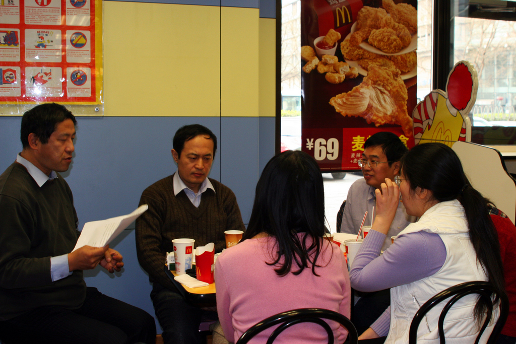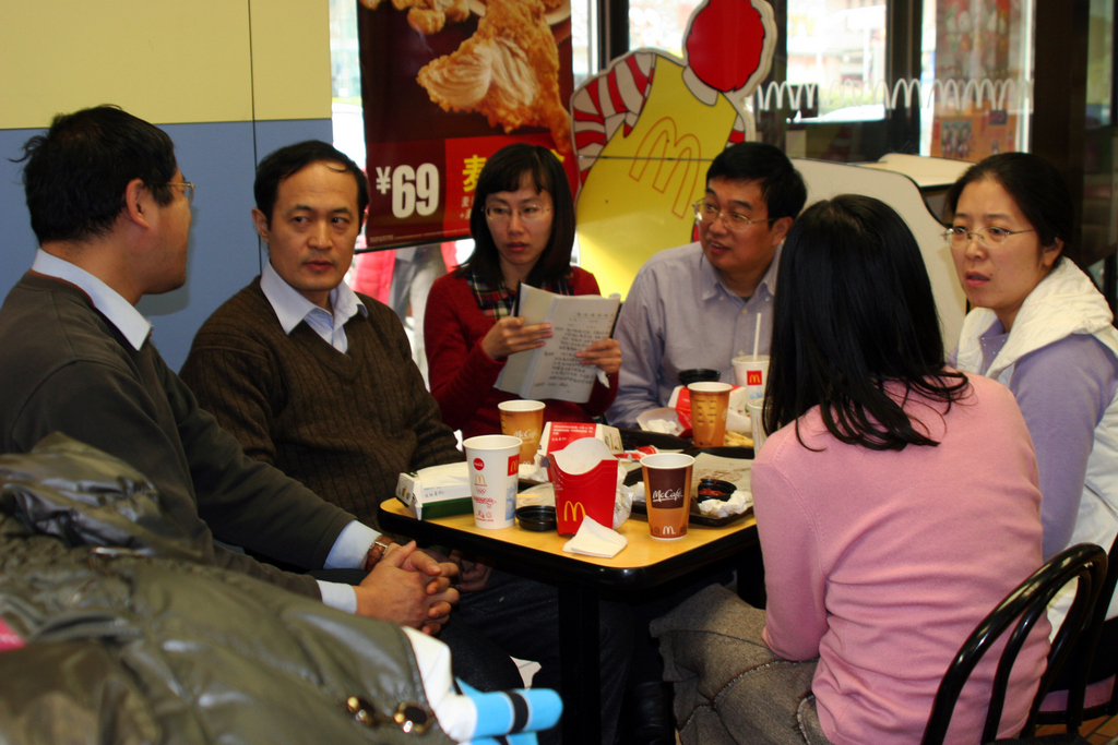 为进一步深入学习十八大精神,加强教职工党员的理论学习,提升教职工党员理论知识与实际工作有机结合运用水平,根据学校以及学院党总支关于深入学习贯彻党的十八大精神的部署和安排,土木学院专业基础部党支部于2012年12月10日利用中午休息时间,积极组织支部党员教师进行学习十八大精神“主讲主问”专题活动,本次活动还特别邀请了专业基础教研室非党员教师程蓓博士参加,活动地点选在了学校附近麦当劳餐厅一角。