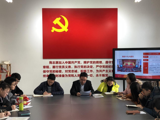 会上,冯宏岳老师还传达了我校第一次党员代表大会是以党的十九大精神为指引,对学校在新时代提质转型升级发展具有重大而深远的意义。会上,他先对学校过去七年的工作进行回顾,然后对学校未来的建设发展和学校坚持改革创新;扎实推进内涵式发展和“双一流”建设;加强思想政治引领,大力提升学校思想政治工作质量和水平;以及全面加强学校党的建设,坚定不移地推进全面从严治党向纵深发展等方面进行了全面解读。他指出,学生党员应带头参与老师课题研究,参加科研工作,在班级内部做好班级事务,起到带头模范作用,推动学风建设。始终坚持要不忘初心、牢记使命,奋力起到带头作用,做好表率作用,把支部建设成一个优秀的基层党组织而努力奋斗。