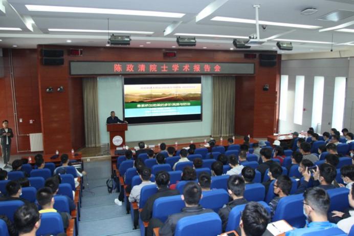 最后,陈政清院士在学院楼E座报告厅为学校师生作了题为“悬索桥多阶涡振及其防治”的学术报告。报告会采用线上线下相结合的方式,全校师生共300余人参加。报告会由李爱群副校长主持。