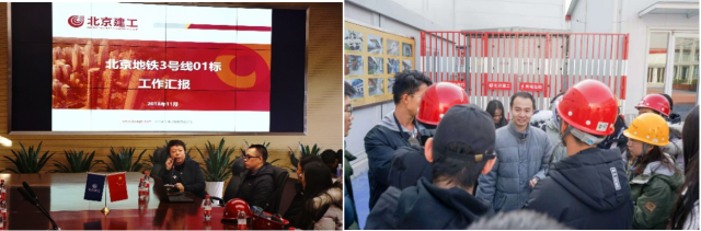 项目部常务副经理细致入微地为同学介绍了北京地铁3号线的建设情况和本合同段地下工程建设的重点、难点及特点。同学们了解到地下工程与地上工程最大的区别在于地下具有更加复杂的地质环境,所以对施工技术的要求更加严格。此外,由于地下空间工程中的影响因素具有随机性和不确定性的特点,且地上及其周边环境复杂的条件下,城市地下空间工程的建设具有较大的难度和施工风险性。