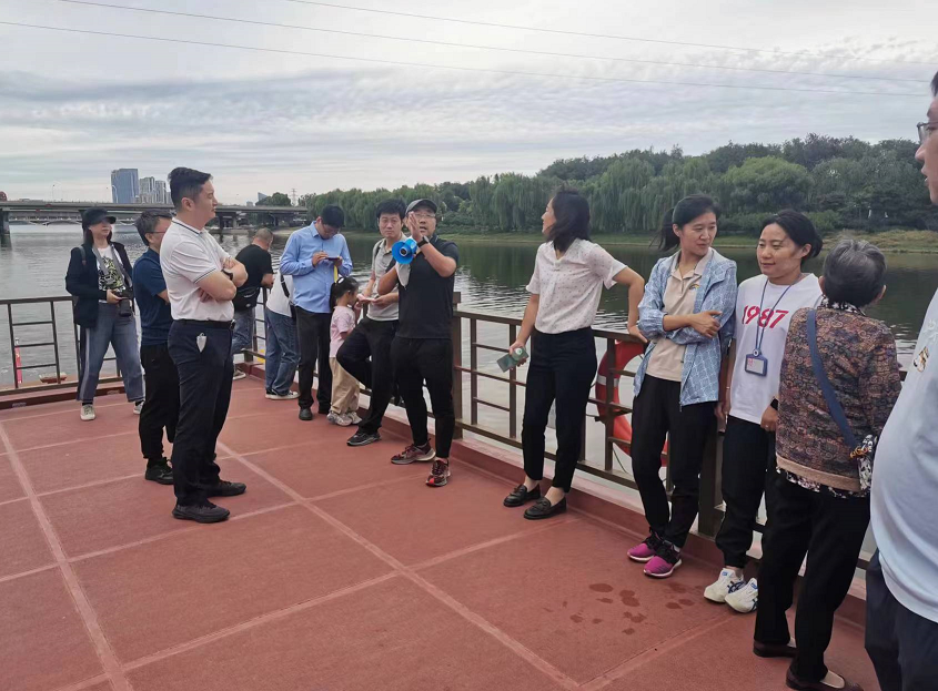 短暂运动热身后,老师们集体乘船欣赏沿河风景,邀请环能学院王鹏老师讲解运河水文化,了解京杭大运河的历史和修建的故事。