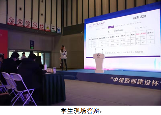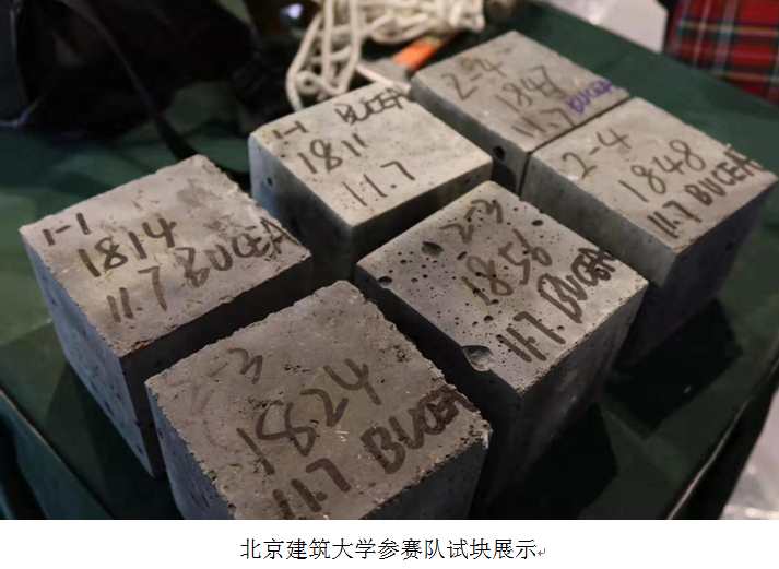 我校参赛队参照了碱激发混凝土的设计方法,通过前期大量试验和查阅文献资料,提出了提高砂率和降低水胶比的方案,并借鉴RPC高强混凝土设计添加钢纤维。创新点在于完全不添加水泥,仅靠工业废料矿粉,粉煤灰等火山灰性材料,可以有效地降低生产原材料过程中的空气污染并且加强对工业废料的利用,还可以有效地降低混凝土的成本。代表队在答辩环节从容稳定,时间把控精准、重点内容突出,获得专家一致认可。