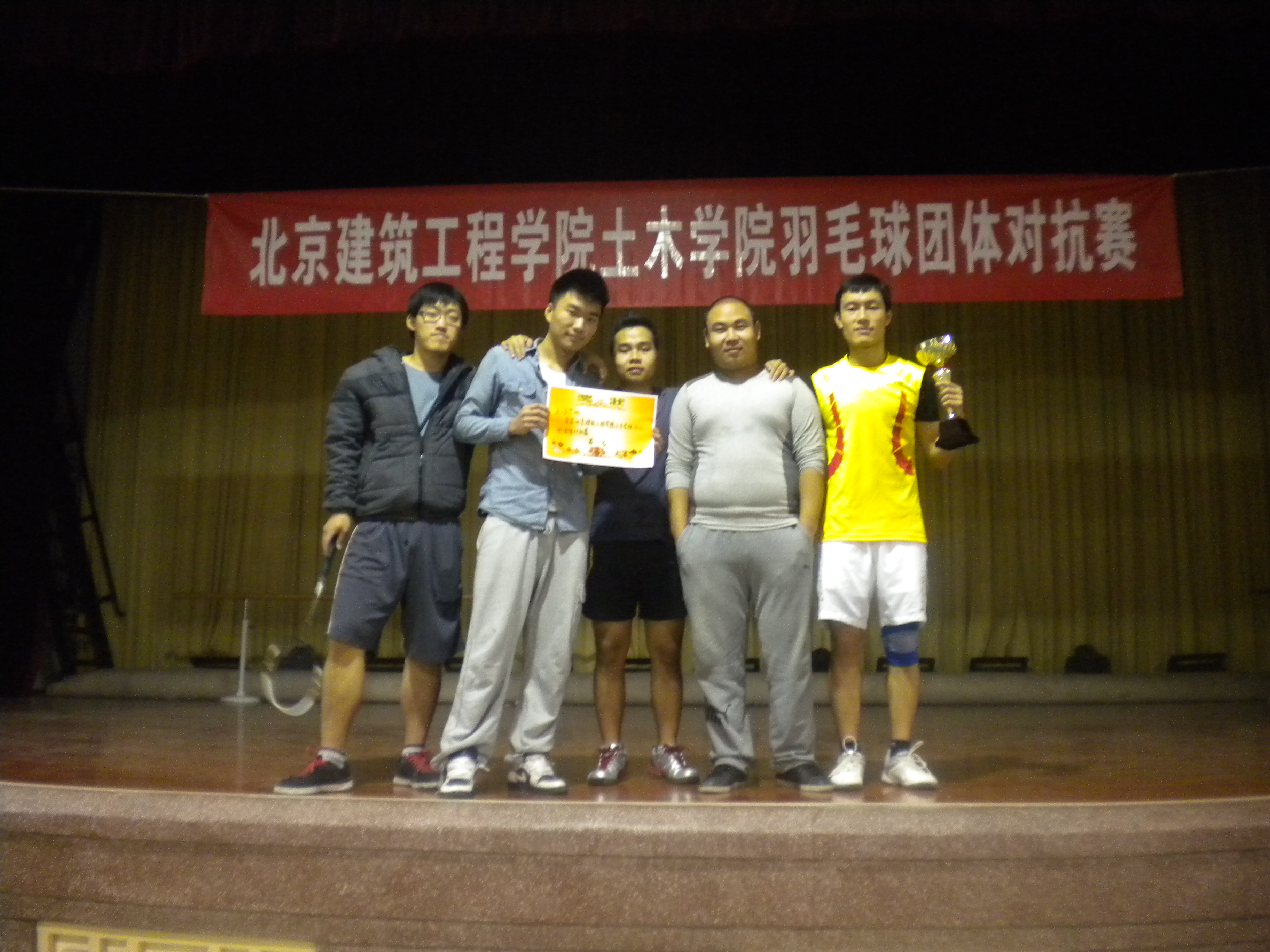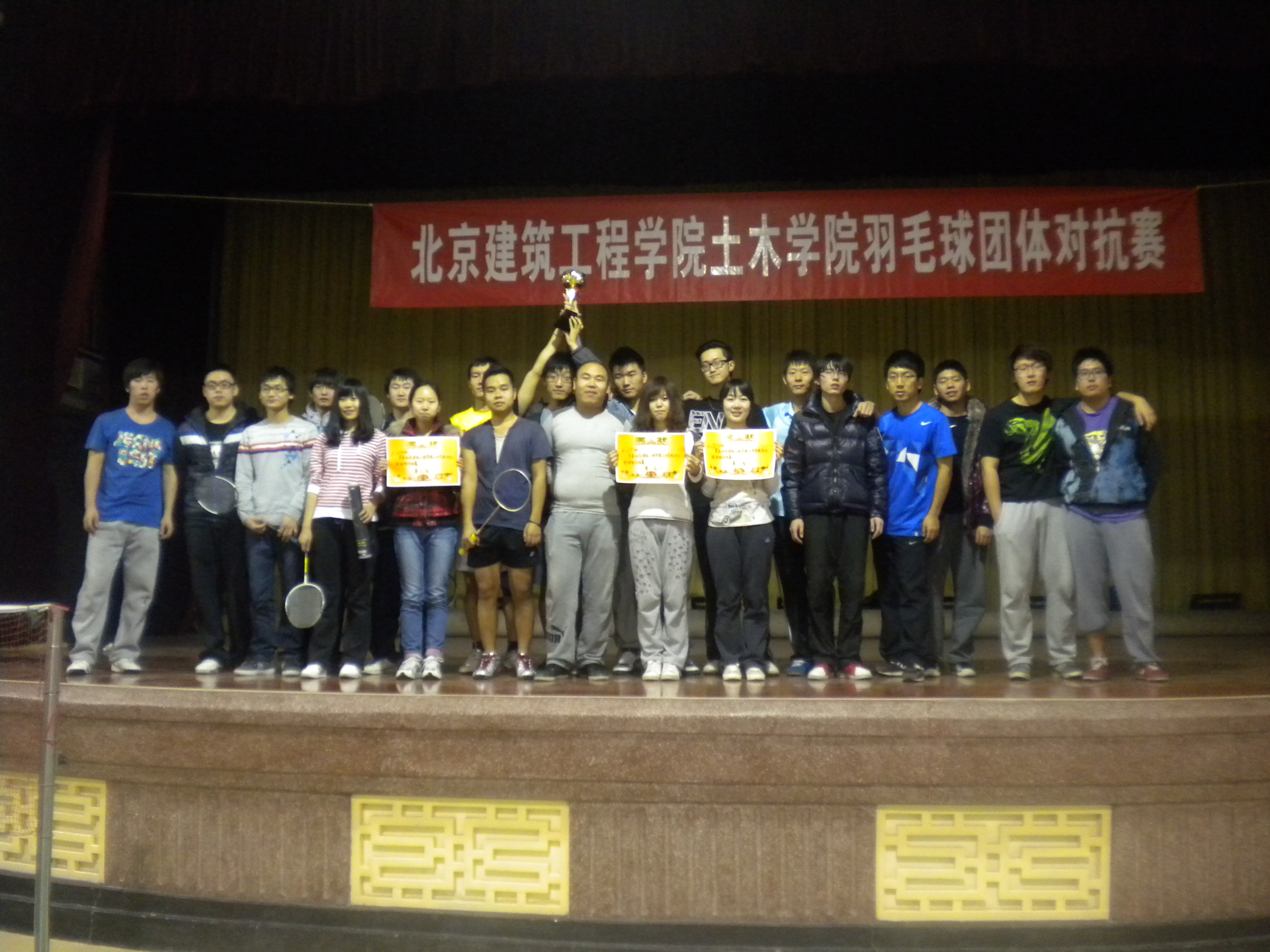 2012年11月22日,土木学院在我校西城校区大学生活动中心进行了羽毛球团体对抗赛决赛。在此之前,经过激烈的预赛角逐,共有四支队伍进入决赛。土木学院团总支书记王秉楠老师、辅导员黄兴老师参加了本次羽毛球比赛的开场表演,为土木学院羽毛球团体对对抗赛决赛拉开了帷幕。