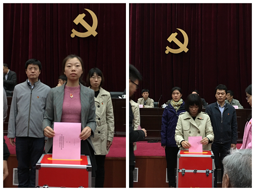 本次大会应到正式党员243名,实到有选举权的正式党员212名。大会在庄严神圣的国歌中拉开帷幕,党委委员张蕊同志宣读了《大会选举办法》(草案)。总监票人侯敬峰同志主持大会选举工作,经过无记名投票方式,差额选举产生(以姓氏笔画为序)于俊楠、龙佩恒、车晶波、冯宏岳、刘倩、李思童、李爱群、张蕊、唱锡麟、韩淼、廖维张等11位同志当选出席中国共产党JINNIAN金年会第六次党员代表大会代表。