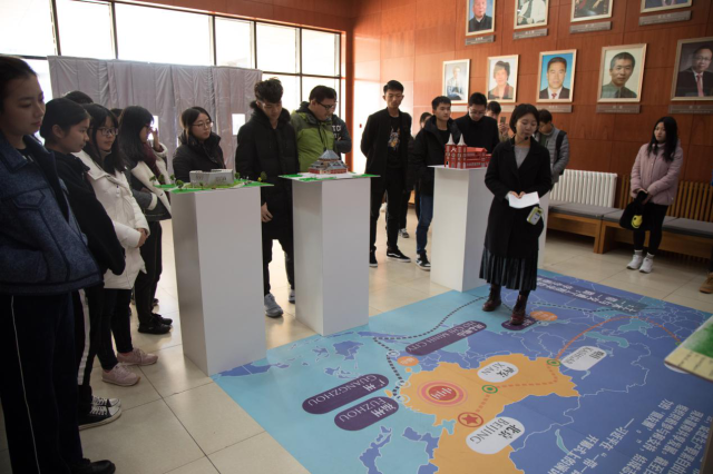 “十九大报告中指出,中国坚持对外开放的基本国策,坚持打开国门搞建设,积极促进“一带一路”国际合作,努力实现政策沟通、设施联通、贸易畅通、资金融通、民心相通,打造国际合作新平台,增添共同发展新动力。”伴随着讲解员的介绍,2017级全体新生细致的参观每一个模型,聆听每一个建筑背后的故事。为深入学习宣传贯彻党的十九大精神,充分发挥学院意识形态阵地以文化人、以文育人的功效,进一步提升新生对专业的认同感、自豪感,11月22日起,金年会官网(以下简称土木学院)举办“一带一路”学生模型展,展览从2016年科技活动周模型制作课程的109件成果中精选9件进行展示。