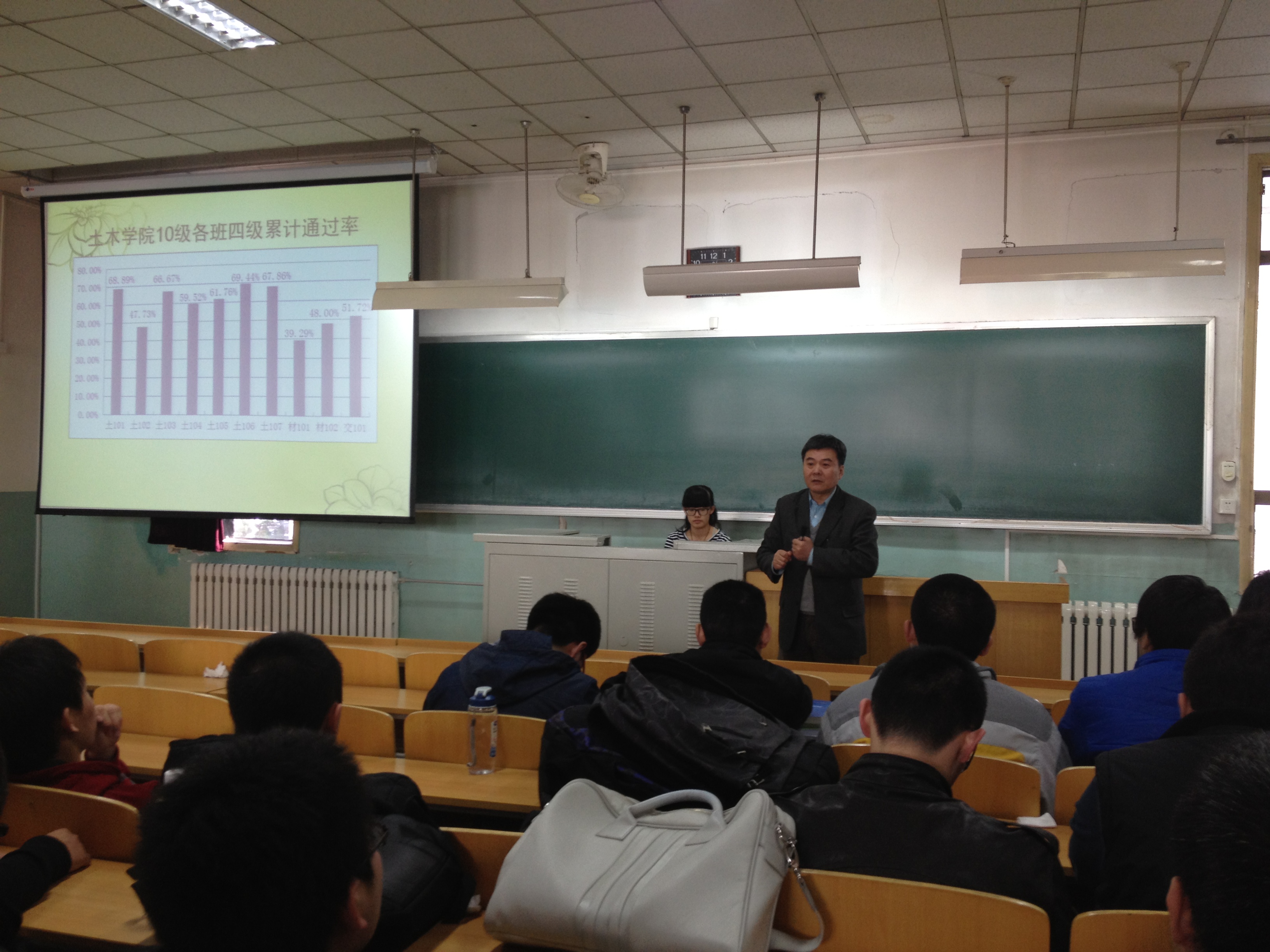 年3月20日、21日中午,金年会官网在西城校区教5-201召开2010级全体学生大会。土木学院院长吴徽教授、党总支副书记朱静老师、辅导员黄兴老师及土木学院2010级全体学生参加了本次大会。