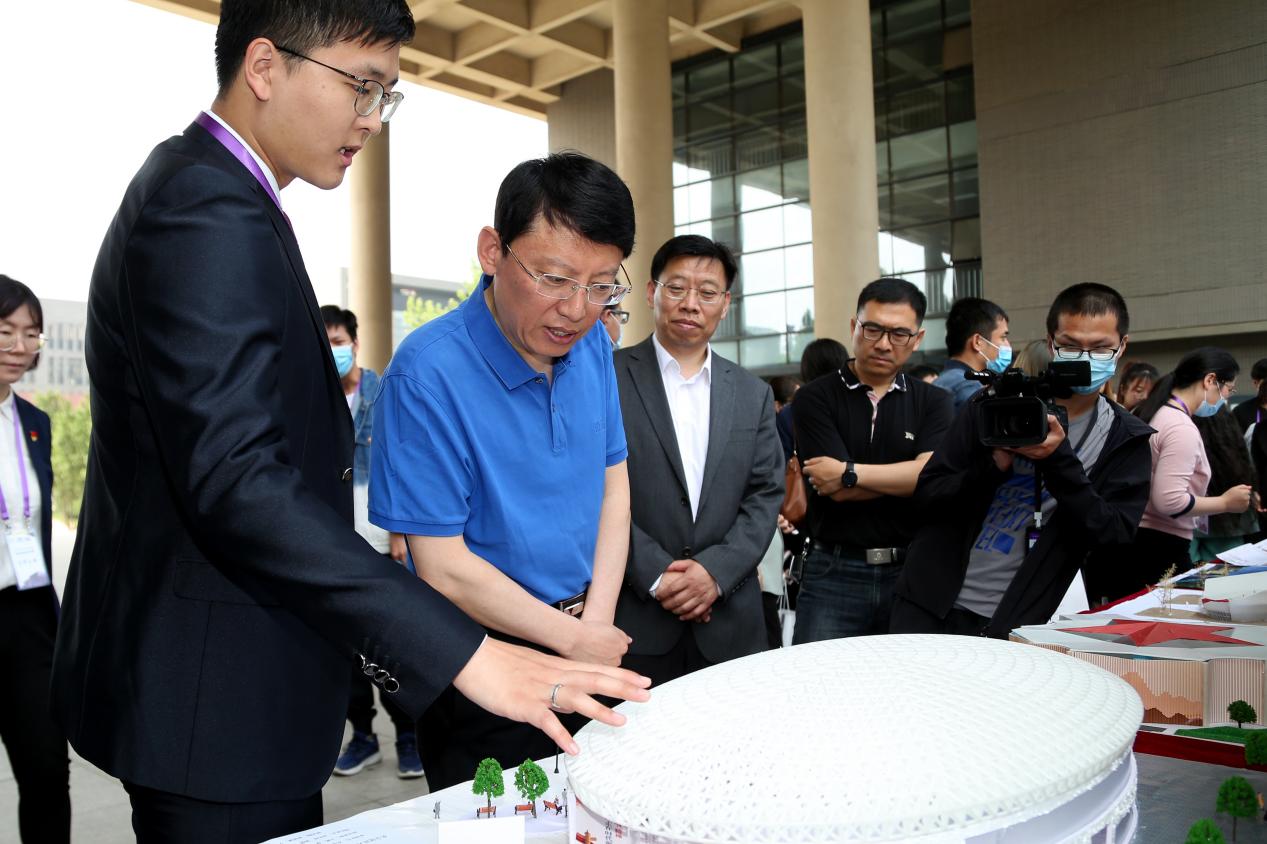 校党委书记姜泽廷莅临现场指导,与大赛评审专家、指导教师、参赛选手们进行了亲切交流,详细询问了各参赛队作品的设计理念和设计过程。他指出,北京市大学生建筑结构设计大赛为师生们提供了非常优秀的实践机会和交流平台,促进了相关学科专业教育教学改革,希望同学们把握住时代机遇和国家需求,不断提高自身科学素养和科技创新能力,努力成长为能担当时代和国家大任的有为青年。