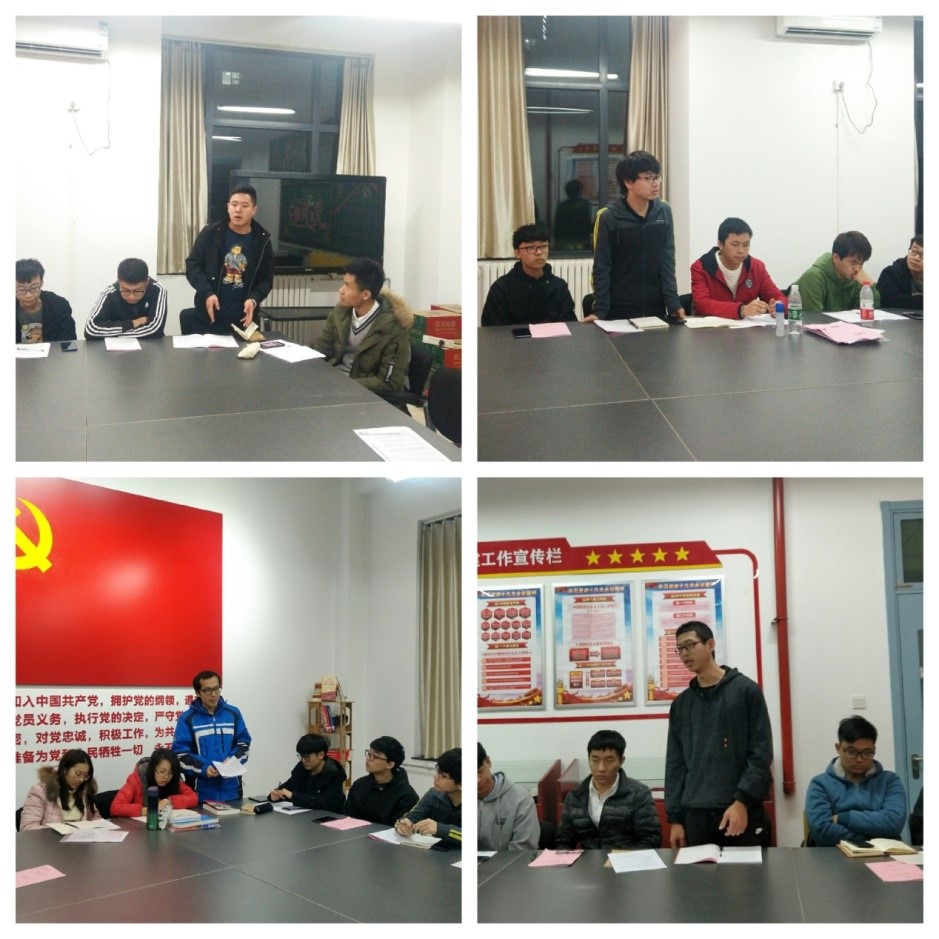 来自材料工程系本科生党支部的冯若迅同学分享了他的入党心路历程,“一开始我觉得自己不够优秀,没有入党的想法。后来经过一年的努力的学习,身边的同学问我为什么不入党,我才开始递交申请书。让我坚定加入党组织真正是在暑期社会实践之后,我跟着老师到了甘肃一个特别贫困的山村,那里坚持留守在山村教书的党员老师们给了我很大的触动。我想他们过着那么艰难的日子,依然坚守岗位不离不弃,而我作为一名大学生,也希望加入到这个光荣神圣的群体中,为社会和国家贡献自己微薄的力量。”交通工程系本科生党支部的李思涵同学则说,“我从小听家人讲党的过去和党的历史,但是我长在当下,看到的是党的现在,我看见很多共产党人为扶贫工作、救灾工作等前赴后继,这样的精神吸引着我感染着我。我希望加入到这个大团队中,告诉我的亲人党就在群众中,就在大家身边,一直为我们服务着、奉献着。”来自地下工程系本科生党支部的谢炎南则用了自己的亲身经历诉说了,在他眼中中国特色社会主义道路是一条什么样的道路,他说:“小时候家里很穷,总要凌晨四五点起来干活,一年收入没多少。后来村里党支部发动大家搞产业脱贫,家里才慢慢好起来。在我眼里,走中国特色社会主义道路就是正确的道路,是一条致富的路,是一条通往幸福生活的路。”