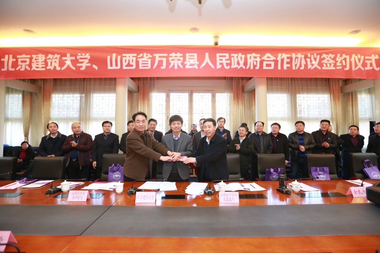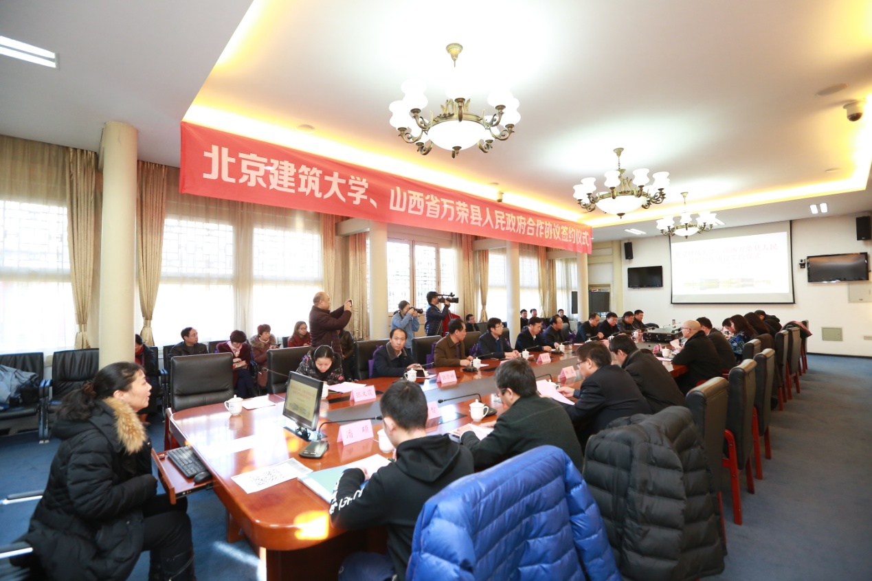 汪苏代表学校致欢迎辞。他指出,多年来,我校与山西省包括万荣县等多个地区有着长期的友好合作关系。JINNIAN金年会源于1907年清政府成立的京师初等工业学堂,JINNIAN金年会自身发展的同时,也为首都北京和国内经济建设做出了积极贡献。目前是北京市人民政府和住房城乡建设部共建高校。2016获批“北京高等学校高精尖创新中心”,2017年获批推荐优秀应届本科毕业生免试攻读研究生资格,有望获批博士点授予权单位。他表示,山西省万荣县历史悠久,人杰地灵,世间流传的“中华笑城、欢乐万荣”,体现了万荣人民的纯朴和乐观向上的精神。县领导抓住了特色经济发展之路,这与我校的建筑材料专业可以有密切的合作发展前景。学校注重理论与工程应用结合,产学研合作互利双赢,希望通过今天的合作协议的签订,共同推动校地、校企合作向纵深发展。