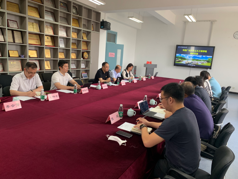 会上,车晶波书记对广州大学土木工程学院一行来访表示热烈欢迎,并对学院基本概况和学院党建工作具体做法及成效进行了介绍。罗迪书记对北建大土木学院在党建工作方面的经验分享表示感谢并对广州大学土木工程学院的党建工作做了具体介绍,她表示北建大土木学院作为全国党建工作标杆院系,在党的建设、党建引领事业发展等方面探索出诸多先进做法,此次调研交流为日后学院党建工作的开展拓宽工作思路。谭平院长对广州大学土木工程学院的学科概况、专业建设、师资队伍、人才培养等方面进行了详细介绍。