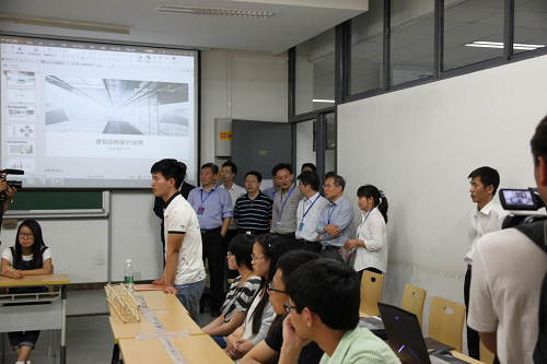 5月19日晚,专家组成员来到基础A座教学楼对学生科技活动进行考察。李爱群副校长及学工部、土木学院领导班子和相关教师陪同考察。