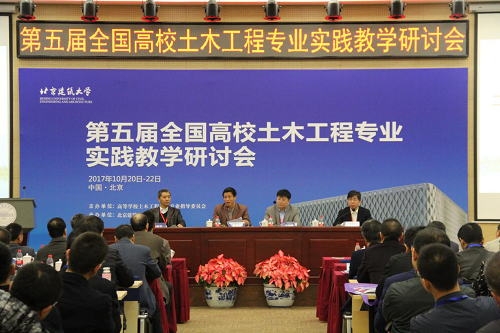 2017年10月21日,由高等学校土木工程学科专业指导委员会主办,我校协办“第五届全国高校土木工程专业实践教学研讨会”在大兴校区举行,会议旨在广泛交流我国土木工程专业实践教学方面的经验,深入探讨实践教学在土木工程人才培养中的地位和作用,总结近年来我国土木工程专业高等教育教学改革研究和实践成果,促进实践教学成果的推广和交流,推动全国高校土木工程专业人才培养, 来自全国土木工程专业指导委员会的委员以及国内70所高校的200余名土木工程专业的老师参加了此次会议。开幕式由我校副校长、专指委副主任委员李爱群主持。