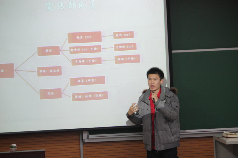 随后,由土木学院团总支书记王秉楠老师做发言,王老师首先给各部门提出三点建议。第一,注重各部门文化建设,明确工作特性和意义,总结工作中的技巧方式。第二,精化部门品牌,宣传各部门特色,获得广泛的同学支持。第三,注重部门传承,分享活动经验,交流工作成果,提高各部门整体工作水平。此后,王秉楠老师对各位部长提出了四点期待,分别是:坚定理想信念,注重个人修养,增强学习能力,建立广泛的群众基础。