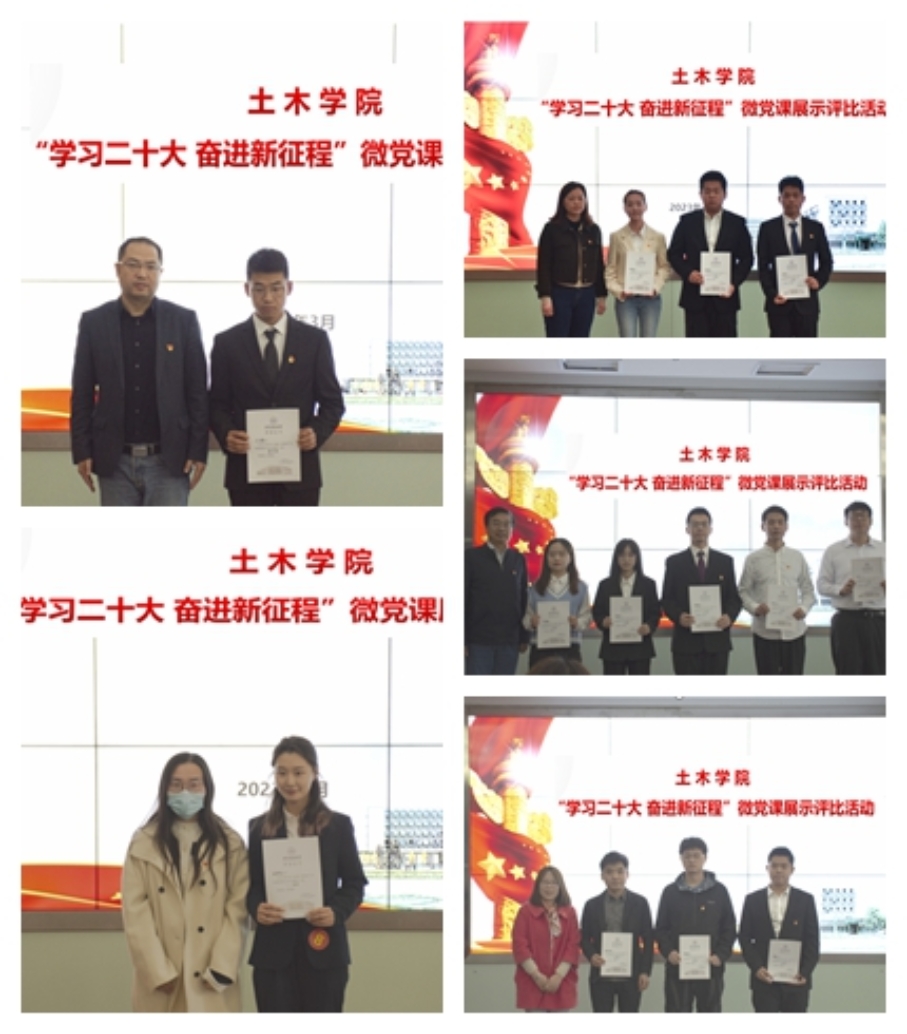 为深入学习宣传贯彻习近平新时代中国特色社会主义思想和党的二十大精神,贯彻落实习近平总书记关于青年工作的重要论述,3月16日,土木学院在学E报告厅举办“学习二十大 奋进新征程”学生党员讲微党课展示评比活动。来自13个学生党支部的选手参加了展示,学院党委书记车晶波、校党委学工部思想教育科科长王梦鸽,土木学院专业基础部党支部书记董军,道桥工程系支部书记金珊珊,以及9个学生党支部的支部书记共12人担任评委。学生党员、入党积极分子等80余人参与了观摩。