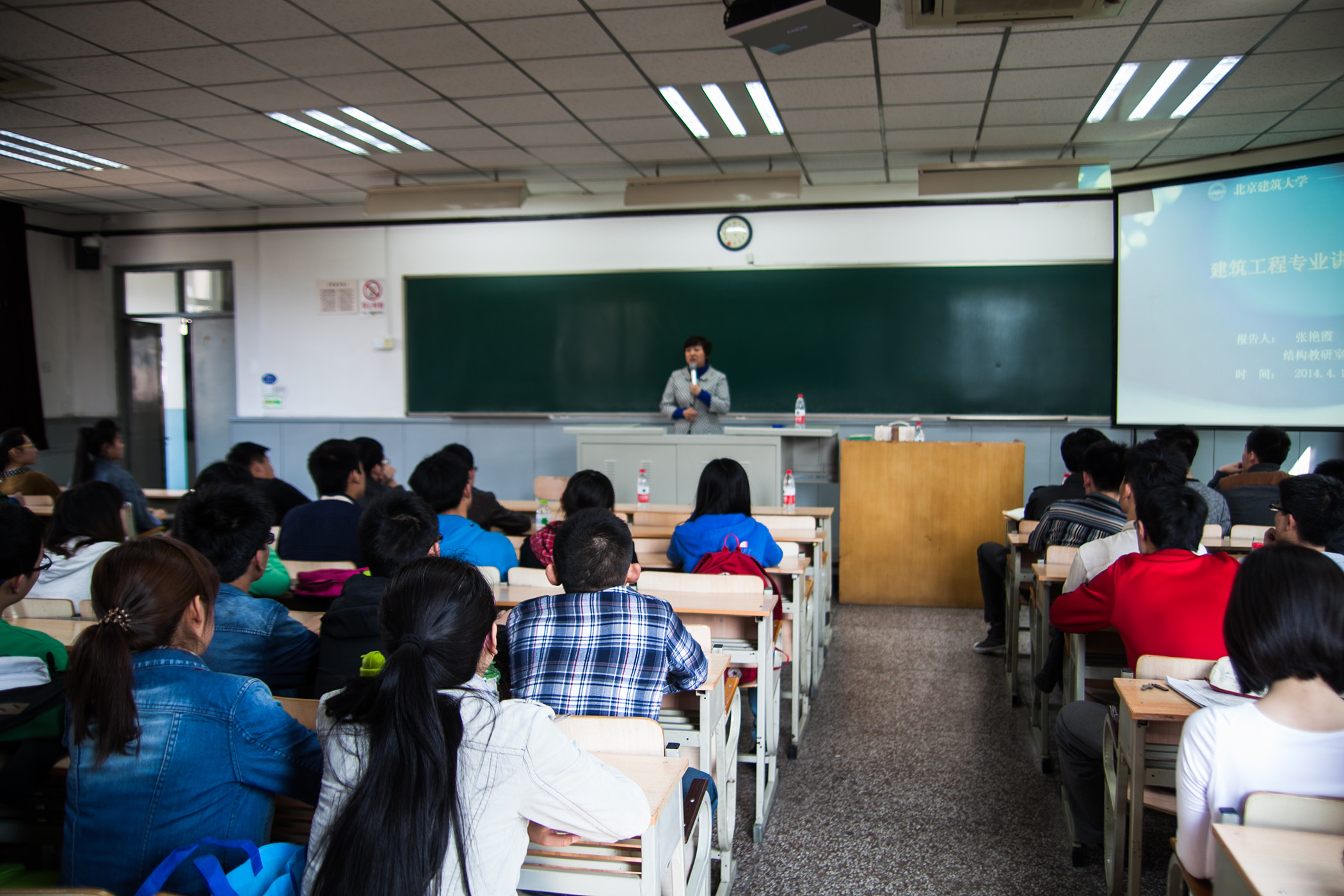 2014年4月1日,金年会官网(以下简称土木学院)结构工程教研室副教授张艳霞老师应学生们的邀请,在西城校区教1-404开讲。本次讲座主要围绕考研、出国留学与就业为2011级学生答疑解惑。张艳霞老师先后在施工单位、设计院以及高校任职,工作经验丰富。参加讲座的还有土木学院党总支书记何立新老师。