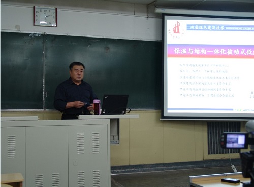 应金年会官网邀请,10月11日下午14点在JINNIAN金年会教1-126教室,哈尔滨鸿盛集团董事长,教授级高级工程师林国海做了关于“保温与结构一体化被动式低能耗建筑”的学术讲座,金年会官网老师、研究生参加了本次报告会。