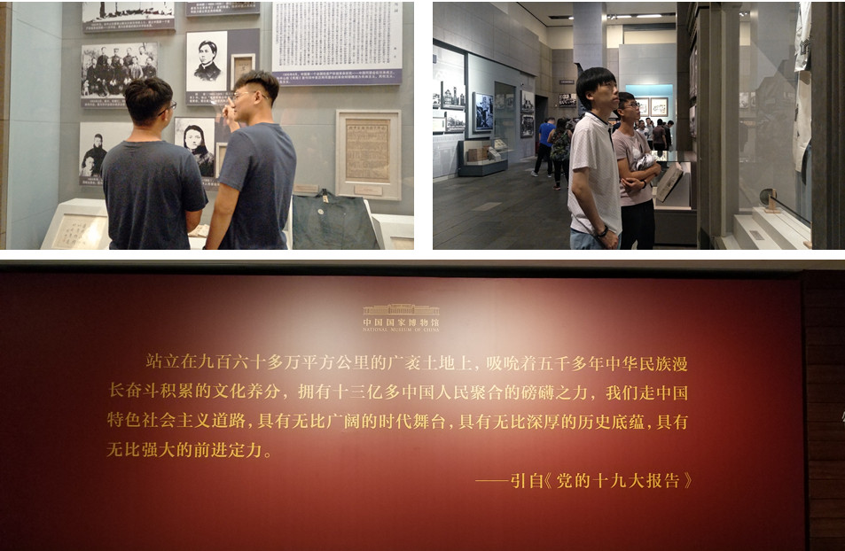 跟随时间的迁移,踏寻历史的记忆,同学们参观一件件展品,一幅幅画卷,了解晚清是如何衰败,到新中国成立的不易。“复兴之路”是历史先辈,一代代共产党人的血泪奋斗的成果。不忘初心,砥砺前行则是我们青年大学生应该牢记于心的。