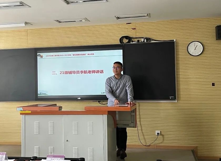 在班级文化建设评选展示环节,新生班级代表通过“展示文化成果+分享心得感悟”进行展示。会上,辅导员李航在总结中讲到,本次班级文化建设展示成果丰富翔实,兼顾了知识的高度与文化的深度。尤其看到大家文化建设的成果都非常符合土木特色。他希望土木学子们应在课本与课堂中汲取知识,在古迹与新闻中学习文化,在道德上坚守,在实践中成长。力争成为中国发展的栋梁,从而更好地实现中华民族伟大复兴。