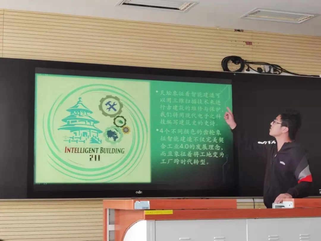 智建211班以“千隼试翼沧桑没,一潭映月乾坤移”为班训,寓意要有宏伟志向厚积薄发。班徽则利用三维扫描沟通古今,齿轮象征工地变为工厂跨时代转型,将电子化,信息化融入到建筑行业中,推动现代建筑进程,外围象征团结互助精神。板报设计方面,从小小红船到万里长征,从星星之火到百年风貌,我们见证了党的伟大历程。用红船代表党的起源,用长征代表党的征程,用长城代表党的宏伟,让我们铭记历史,不负使命。