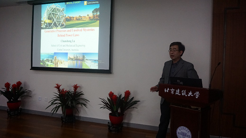 10月27日,应我校土木学院、研究生院的邀请,澳大利亚科廷大学副教授卢春生到我校开展学术交流活动,并为学校师生做了题为“Generative Processes and Unsolved Mysteries Behind Power Laws”的学术讲座。我校师生40余人参加报告会,报告会由研究生院常务副院长兼土木学院院长戚承志主持。
