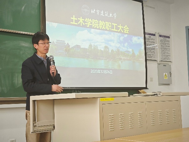 为落实JINNIAN金年会处级单位和处级干部考核工作要求并部署期末阶段重点工作,土木学院于12月26日召开处级单位与处级干部述职考核测评会暨全院教职工大会。土木学院领导班子和全体教职工出席会议。会议由党委书记车晶波主持。