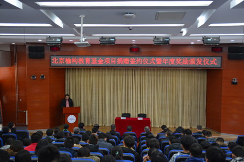 签约仪式结束后,研究生院常务副院长兼土木学院院长戚承志宣读2015-2016年度获得北京榆构教育基金奖励的师生名单,举行颁奖仪式。