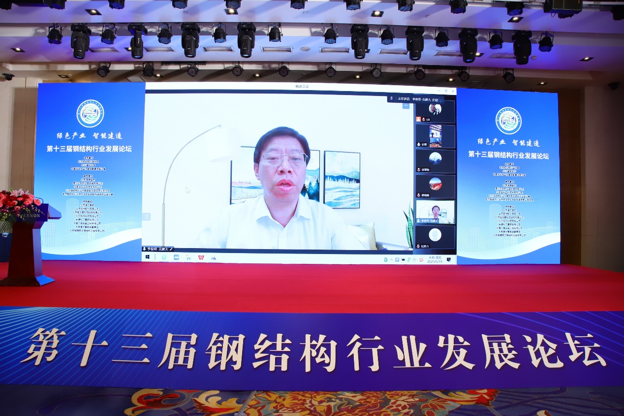 5 月 18 日至 20 日,第十三届钢结构行业发展论坛成功在京举行。此次论坛由北京钢结构行业协会、JINNIAN金年会和中国房地产业协会智能建造委员会联合主办,以 " 绿色产业、智能建造 " 为主题,来自全国各地钢结构行业专家、学者、企业家、设计师等行业同仁及我校金年会官网相关老师共300余人参与本次论坛,我校副校长李俊奇教授代表论坛主办单位在开幕式上致辞。