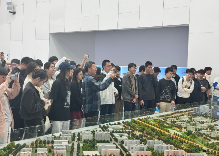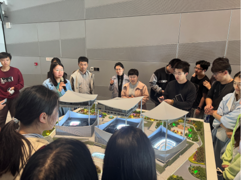 在北京城市副中心综合交通枢纽,师生们通过讲解、观摩沙盘、登顶眺望深入学习了副中心“一带一轴多组团”的城区规划设计理念,并围绕“历史文化、绿色生态、智慧宜居”三大主线学习副中心在高质量发展中的特色与创新,加深对副中心在疏解非首都功能、推动京津冀协同发展中的重要作用的深刻理解。
