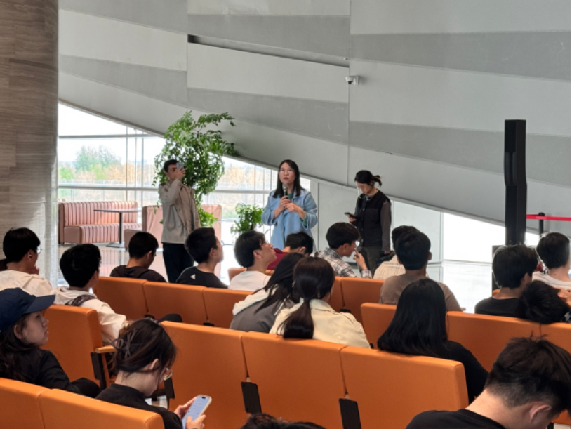 随后,师生们前往北京艺术中心,刚踏入大厅便被这座充满艺术气息的殿堂所吸引,艺术中心的设计理念源自通州古粮仓和运货船舶,其船帆造型的屋顶设计轻盈灵动,兼具美感与功能性。屋顶采用先进材料和工艺,既美观又满足声学和采光需求。内部空间布局精巧,歌剧院和音乐厅的设计完美融合了功能与美学。师生们在参观中深刻感受到设计的精妙与艺术的魅力,对这座融合设计与音乐之美的建筑赞叹不已。
