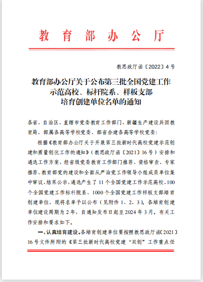学院党委入选“全国党建标杆院系”