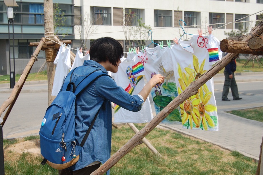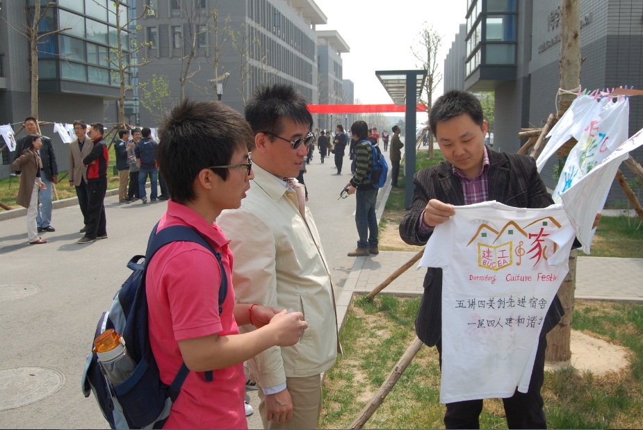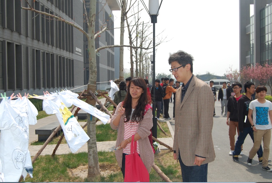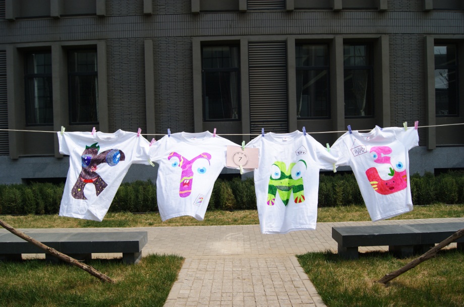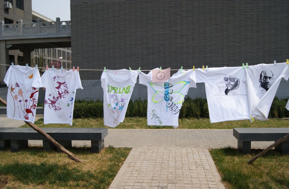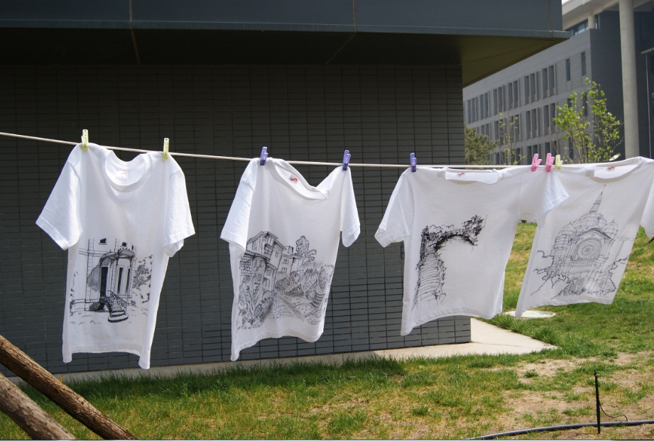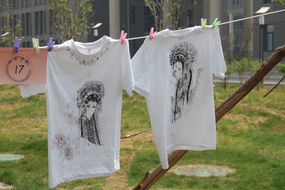 1-张启鸿助理和老师们讨论文化衫 2-何立新和王秉楠老师在和同学讨论文化衫 3-同学在向魏强老师讲解文化衫上的内容 4-李阳和陈亚飞老师在欣赏文化衫 5-精美建筑 6-京剧脸谱 7-风景人物 8-卡通动漫 9-英文字母 10-现场作画 11-热闹的现场