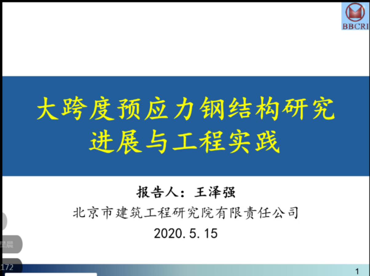 5月15日,应我校金年会官网的邀请,北京市建筑工程研究院有限责任公司副总工程师王泽强教授级高工,通过在线方式为学校师生做了题为“大跨度预应力钢结构研究进展与工程实践”的学术报告。我校师生240余人参加报告会,其中包括张艳霞教授、侯敬峰副教授、王亮副教授等,会议由廖维张教授主持。
