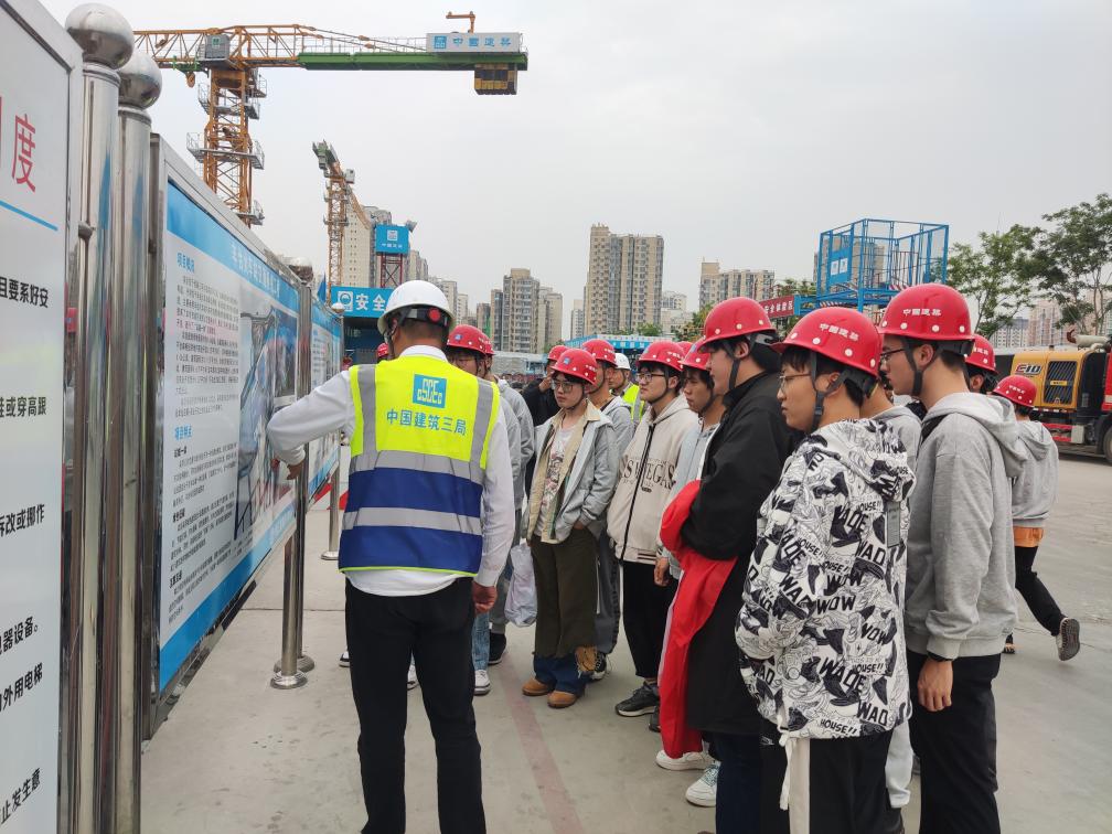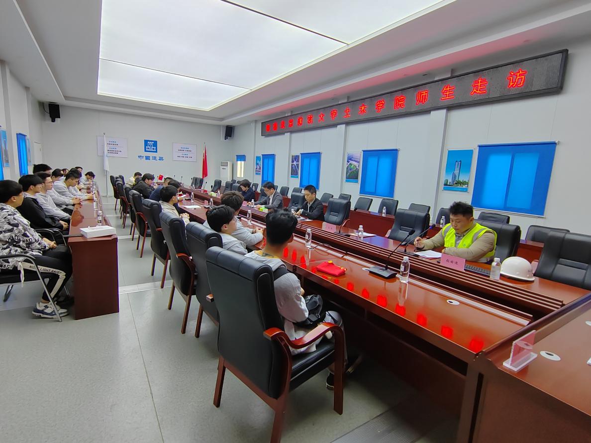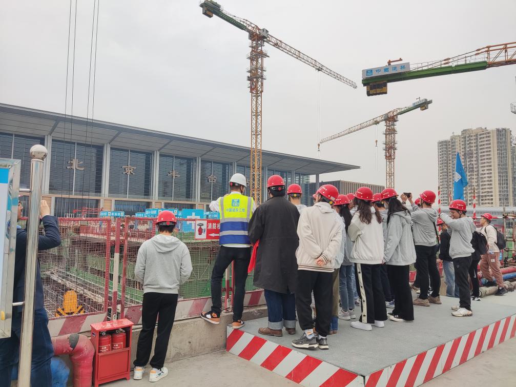 4月27日,土木学院“北斗引航”学生骨干训练营在学院辅导员李航、黄元景的带领下,前往中国建筑第三工程局丰台火车站交通枢纽工程项目开展专题实践交流。中建三局一公司基础事业部党总支副书记李华、事业部总工程师周辉、丰台交通枢纽项目经理刘德芬、项目总工王令、项目党支部书记张皓迪带队参观项目现场并与训练营成员座谈交流。