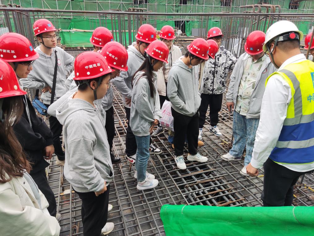 在项目现场,训练营学员们在项目总工程师王令的引领下,了解项目整体情况、施工背景与技术特点,并实地参观了项目施工现场。丰台站枢纽作为北京市重点项目,工期比常规项目少30%,但是工作量要比常规项目高50%,所面临的技术难题多,“南枢纽在结构施工过程中,遇到的最大难题就是离地铁和丰台站房太近了。”项目总工王令介绍,该项目东侧距离地铁10号线的最短距离仅有3米,并且与16号线的安全保护区相连。因此,如何避免项目建设影响到地铁线路的正常运行至关重要。为了解决这一问题,南枢纽东侧采用了双排地桩来确保地下结构的稳定。另外,为了将影响降至最低,这一区域土方及支护阶段仅在地铁每天停止运营后施工。王令勉励同学们在校要打好基础,学好结构力学等专业知识,为今后进入土木行业、服务首都“四个中心”建设奉献青春力量。