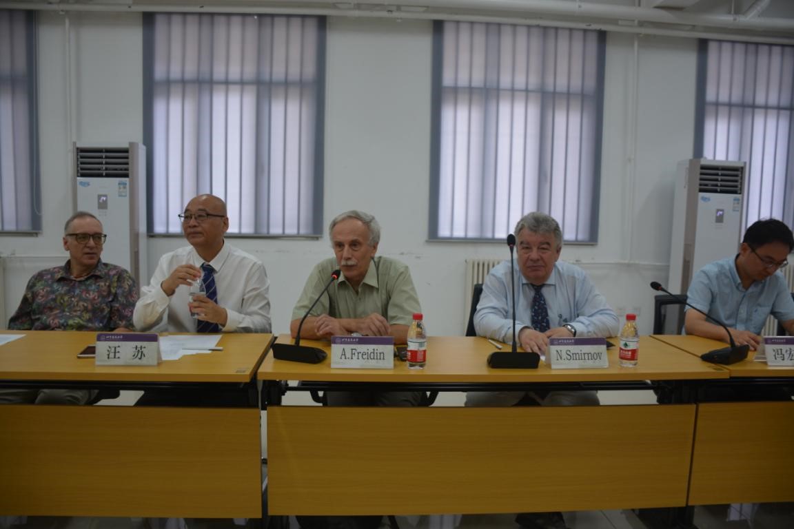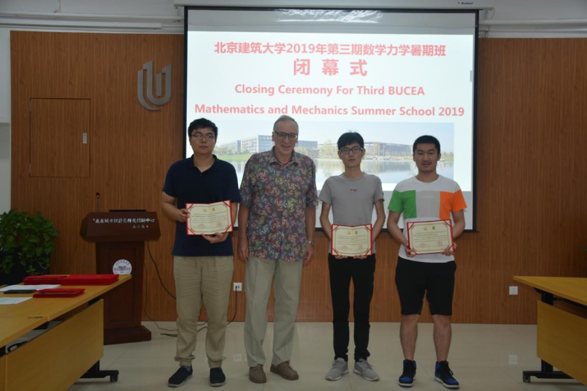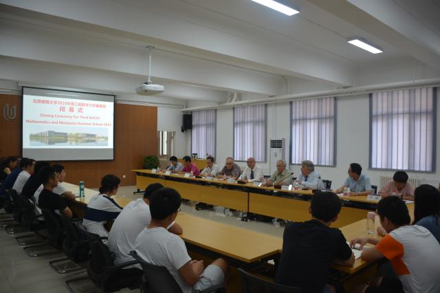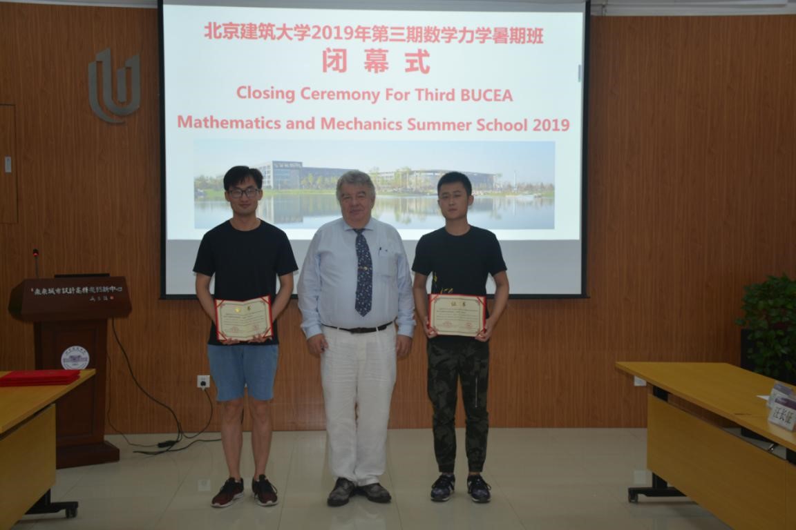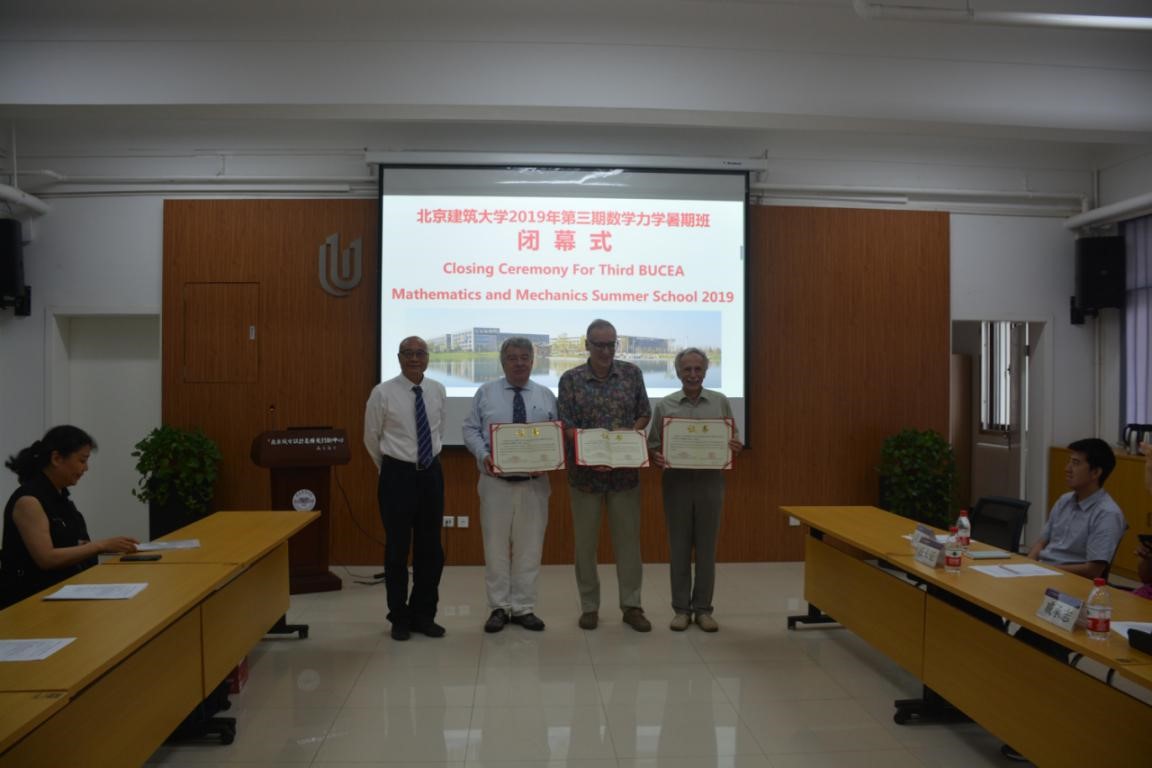 JINNIAN金年会2019年第三期数学力学暑期班自7月25日开班以来,历时两个多星期,于8月9日上午9:00在西城校区高精尖中心会议室成功落下帷幕。JINNIAN金年会副校长汪苏,俄罗斯科学院院士Mikhail Guzev教授,俄罗斯科学院机械工程研究所、圣彼得堡彼得大帝理工大学、彼得堡大学Aleksandr Freidin教授,俄罗斯自然科学院院士、莫斯科大学Nikolay Smirnov教授、土木学院党委书记冯宏岳、研究生院常务副院长兼土木学院院长戚承志、研究生院副院长汪长征、理学院副院长白羽、人事处刘文硕以及来自我校和兄弟院校的师生一同参加了闭幕式。
