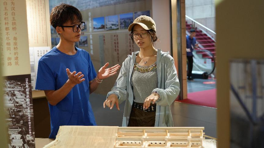 实践团成员重点参观了北京规划展览馆、北京先农坛太岁殿和万宁桥,深入了解北京中轴线的形成及其演变特征,团队发现中轴线演变与北京老城发展同步,有着悠久的历史背景与深厚的文化底蕴,以紫禁城为核心形成了层次分明、南北呼应的城市格局。实践团在展览馆为小学生讲解中轴线的历史和文化,通过与孩子们的互动,初步了解他们对中轴线文化的认知和兴趣。在讲解过程中,团队收集记录游客的反馈,数据将作为后续实践的重要参考依据。