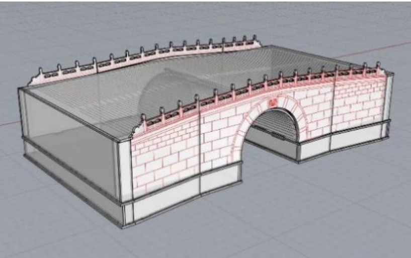 图五:万宁桥教具模型与先农坛太岁殿屋架模型仿真模拟