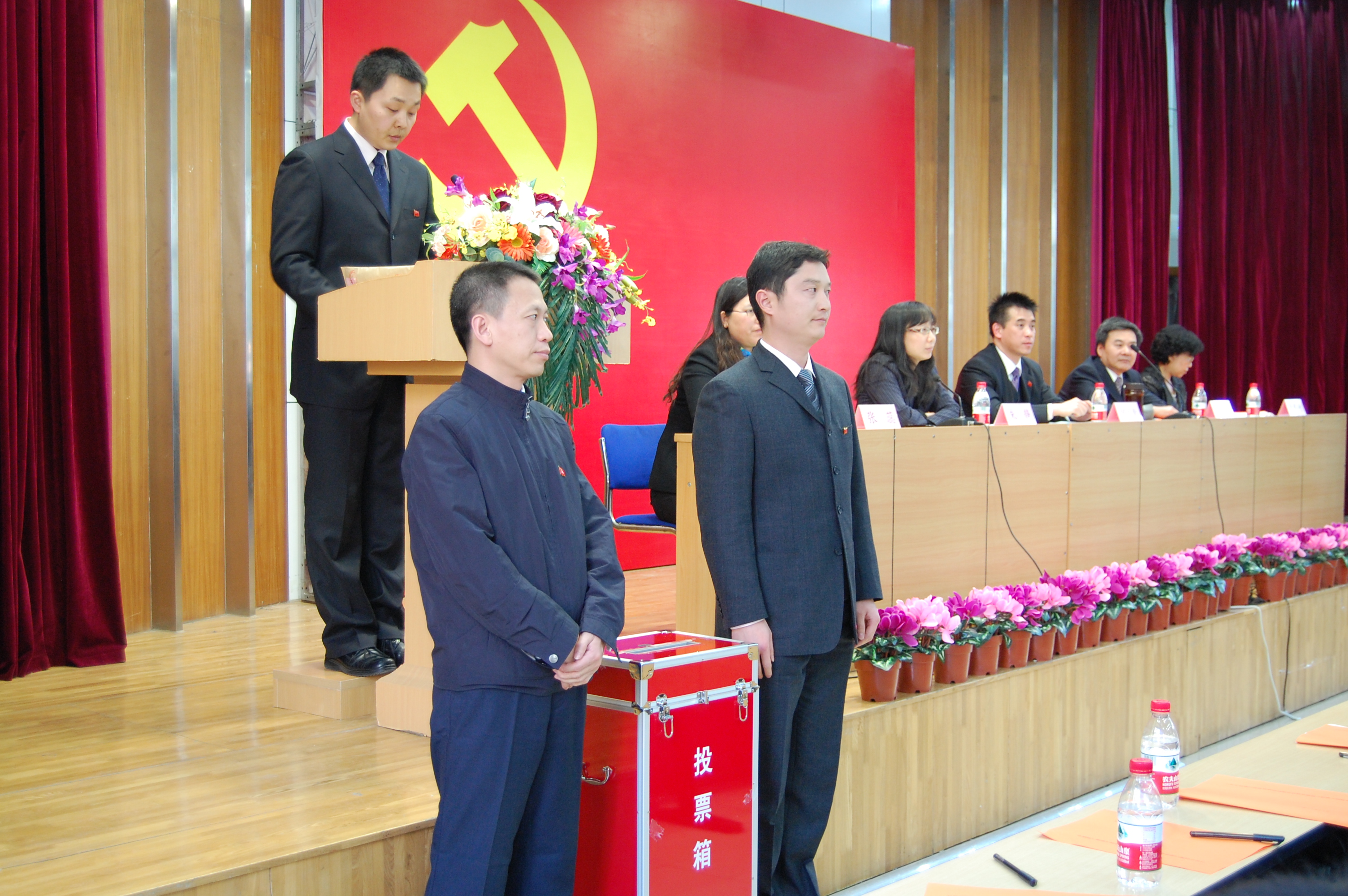接下来,上届总支委员会组织委员张蕊同志介绍了党总支委员会候选人员的具体产生过程;校党委常委、组织部长张素芳同志代表校党委宣读了《关于同意龙佩恒等9位同志为金年会官网党总支委员会委员候选人预备人选的批复》;随后,大会工作人员宣读了候选人基本情况及大会选举办法;全体与会党员一致通过了由上届总支委员纪检委员张怀静同志宣读的总监票人、监票人名单;总监票人王秉楠同志主持选举工作,经过紧张而有序的投票、计票工作后,总监票人宣读了新一届的总支委员会的7名委员名单,他们是何立新、吴徽、龙佩恒、朱静、张怀静、张蕊和戚承志。党员大会最后在全体党员合唱的国际歌中结束。